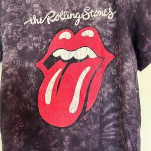 Rolling Stones Purple Tie Dye Band Sleeve Tee 100% Cotton Size SM