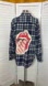 Rolling Stones Red White Blue Plaid Flannel Graphic DIY Shirt Upcycled Band Tee