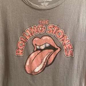 Selling this Rolling Stones Gray with Red Lips and Tongue T Shirt with Red Crystal embellishments. Size is Women's Large. 100% Cotton. Measurements below.