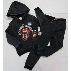 Rolling Stones Toddler Hoodie Joggers Set 5T NWT Rockstar Acid Washed Flawed