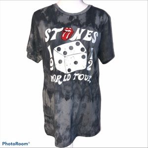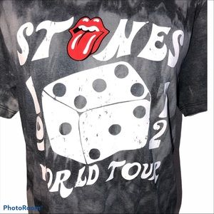 New without tags Rolling Stones replica World Tour 1972 tour tee has a the famous lips and a die graphic details. Gray tie dye pattern.