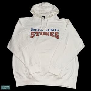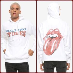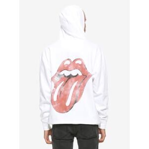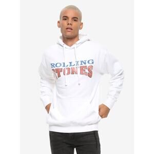 Rolling Stones White Varsity Logo Hoodie Retro Rock Graphic Sweatshirt 3X NEW