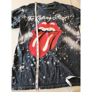 Rolling Stones tee. Very cool take on the Rolling Stones iconic tongue out picture. Black shirt with white bleach dye spots. 100% cotton. Great pre-loved condition with light wear. Size S/M but based on measurements I am listing it as a medium. Measurements in photos.