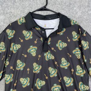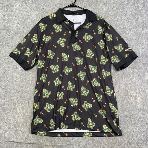 Rolo Golf Mens XXL Polo Shirt AOP Performance Golfer Skull Black Casual