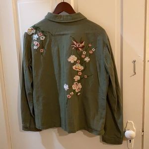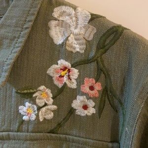NWT, Roly Poly jacket! Not Jean jacket but closest category. So so so adorable! Size large Army green with beautiful embroidered florals. And pockets! Button front. Absolutely a fall wardrobe must have! Very versatile!