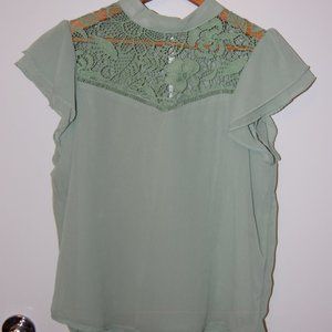 Pale green. 100% polyester. Dry clean only, hang dry. EUC. Cat friendly home.