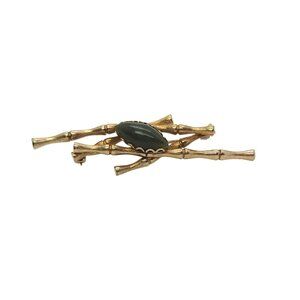 Rolyn Inc. 1/20 12K Gold Filled Bamboo Brooch With Jade Cabochon 1960s Vintage