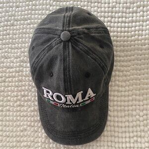 Stylish Roma cap. Black with white embroidery. Features Italian flag accents.