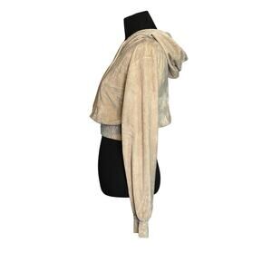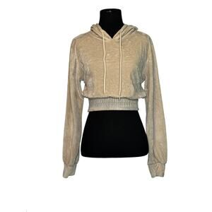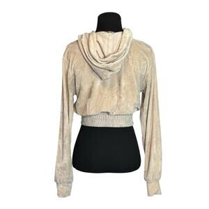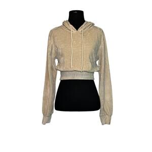 Roma Concept beige velvet long sleeves crop hoodie sweater size Small
