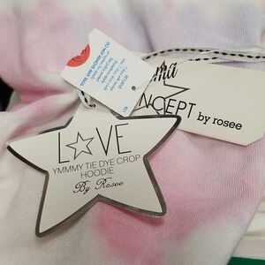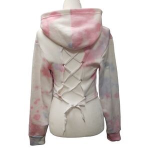 Roma Concept by Rosee YMMMY Crop Open Back Hoodie Pink Blue White Tie Dye SZ L