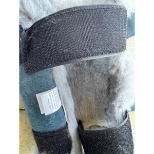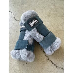 Roma Equine Protective Boots for standard horse in a size medium. Fully lined with a faux fur cushioning in gray. Outside is suede in a teal color. Double Velcro closure. Washable. NEW never used without the box.