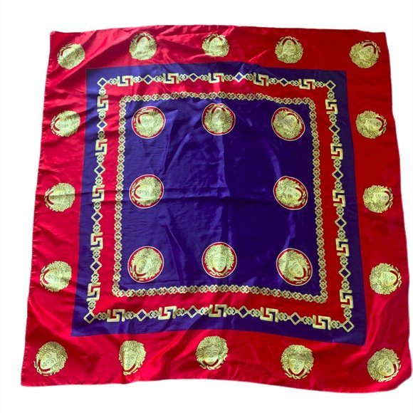 Pre-owned Roma Italia Scarf. 100% Polyester. 34"x34" Red, Blue, and Gold