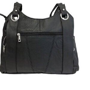 Roma Leather -Dual Zipper Moto Leather Concealment Tote 7008 SURVIVAL KIT!