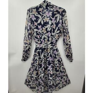 Roma Vintage Blue Floral Sash Waist Long Sheer Sleeve Flowy Maxi Fit n Flare Dress