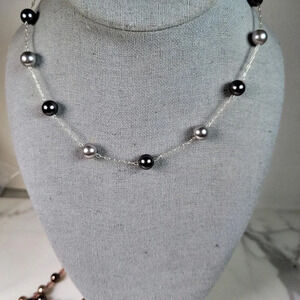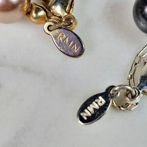 Roman Beaded Necklace Set Of 2 Signed Floating Faux Pearl Gray Peach Pi…