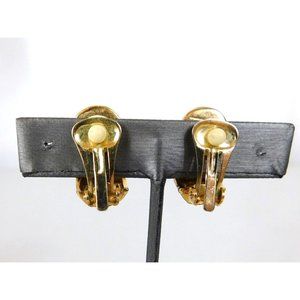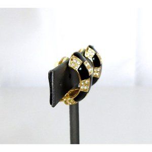 Roman Black Enamel Pave Crystal Rhinestone Half Hoop Earrings Clip on