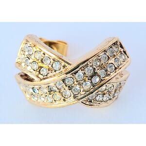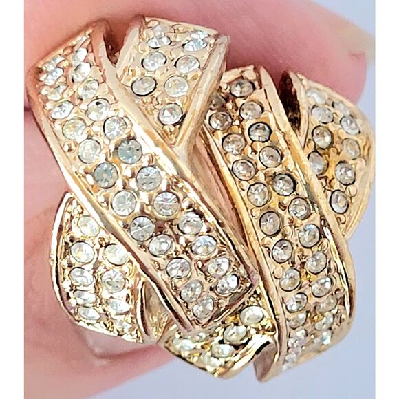 Roman Crossover X Faux Diamond Earrings Signed Vintage Gold Tone Pierced