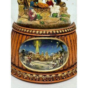 This intricately crafted musical snow globe features a nativity scene, playing "O' Holy Night." Its detailed design and elegant base make it a cherished collectible.