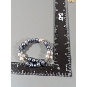 Roman Gray Faux Pearl Two Strand Stretch Bracelet 7" Elegant Evening