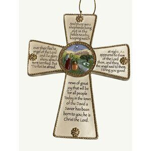 Roman Inc. 2002 Nativity Cross Wall Hanging With Luke 2:8-11 Christmas Verse