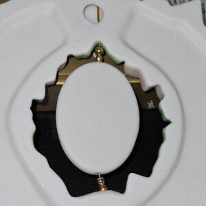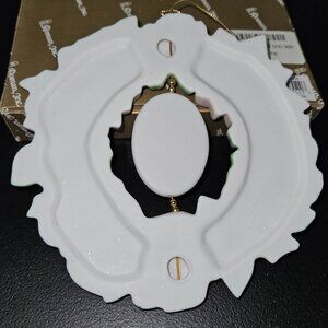 In the Center of the Wreath is a White Oval Porcelain Suspended on a Gold tone Rod so it can Spin Around