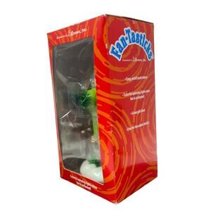 This 1990’s festive Fan-Tasticks snowman with spinning lights is the perfect addition to your holiday décor. He is dressed in a black top hat and green vest. When the fan is activated, his lights spin and sparkle, creating a magical display.