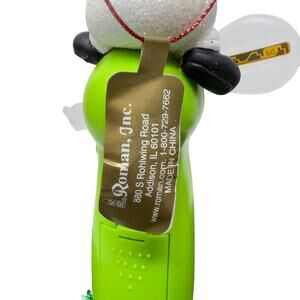 This 1990’s festive Fan-Tasticks snowman with spinning lights is the perfect addition to your holiday décor. He is dressed in a black top hat and green vest. When the fan is activated, his lights spin and sparkle, creating a magical display.