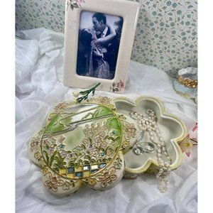 Roman Inc Jewelry musical box, Floral and golden trinket box, porcelain, so cute