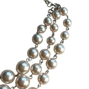 Style: Silver tone, short length, 3 strand off white champagne faux pearls