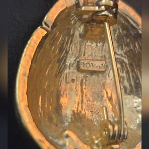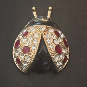 Vintage Ladybug Brooch Bug Gold Tone Rhinestones & Enamel signed ROMAN. Beautiful EUC.