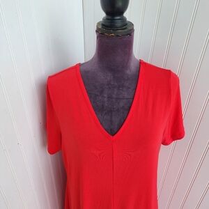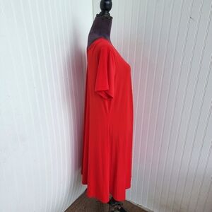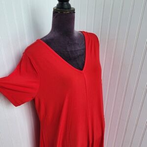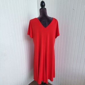 Roman Womens 14/16 M Stertch Red Jersey Comfort MIDI Dress Short Sleeve V- Neck
