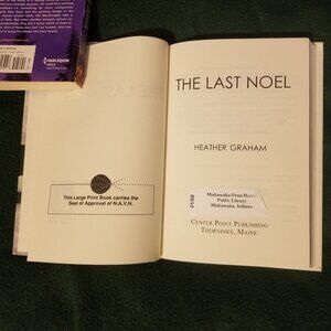 Four Christmas Heather Graham books. Three paperbacks and one Large Print hardcover. They were my husband's. One is ex-library, bought for him from a website that buys their books from libraries.