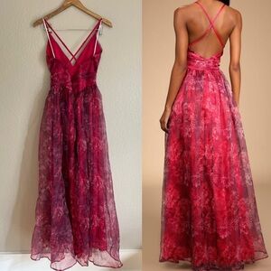 Lulus Romance That Wows Magenta Floral Print Organza Maxi Dress!