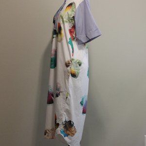 Romance Was Born Colorful Feather Print Cotton Short Sleeve Shirt Dress Size 6