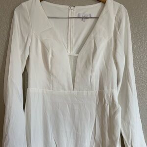 Lulus Exclusive! Make it a memorable occasion with the Lulus Romance for the Ages White Long Sleeve Maxi Dress! Sleek woven fabric shapes this dress that has a plunging V-neck (with mesh insert), a princess-seamed bodice, and long sleeves. Light gathering at the waist tops a maxi skirt with a thigh-high front slit. Hidden back zipper/clasp.
