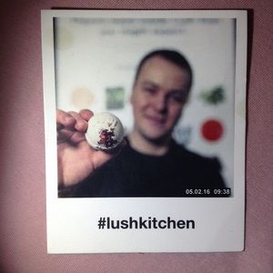 Lush UK kitchen exclusive Romance in a stone bath bomb. Contains red rose petals, ole vera extract, and tangerine oil. Comes with Polaroid of the bath bomb!