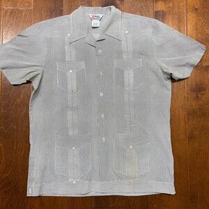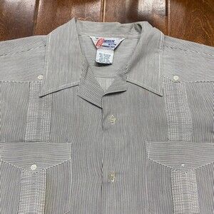 Romani Collection Vintage 70s Quad Pocket Micro Stripe Shirt Grey Men's Size Large
