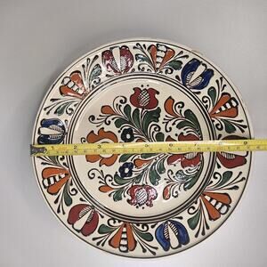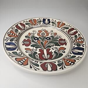 Romanian Hand Crafted Korond Large Glaze Clay Pottery Plate 9.5" Rustic Folk Art