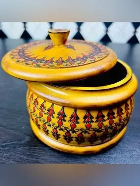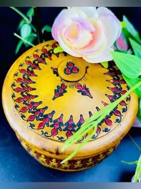 Perfect for storing small keepsakes, jewelry, or sugar, this handcrafted wooden box adds rustic charm and cultural character to shelves, kitchens, or decorative displays.