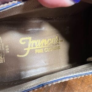 Romano Martegani for Francos handmade brogue oxford blue leather cream linen 9.5