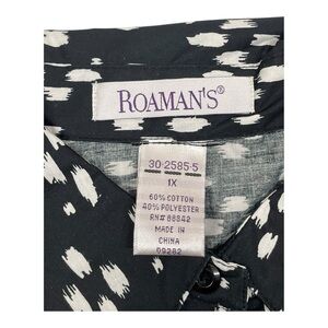 Roman’s Blouse Size 1X Black White Long Sleeves button down with collar