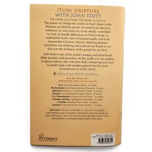 In Paul's letter to the Romans he explains to us the power we've been given to be effective witnesses, to overcome sin, to be wholly committed to God, to handle differences in Christ's body, to understand God's view of homosexuality and to be responsible Christian citizens. The truth in Romans will transform your thinking and convict your heart as you discover the power of the gospel for every area of your life and our world. John Stott is one of the world's leading and most loved Bible teachers and preachers. In this guide you can explore Scripture under his guidance, enhancing your own in-depth study with insights. Studying Romans transforms our thinking and convicts our hearts as we discover the freshness of the gospel for our lives. New Old Stock. Trade Paperback. Approximate Measurements: 5.5”x8.25”x275” 112 Pages.