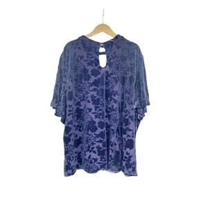 Roman’s Purple Blue Floral Cut Out Top Womens Plus Size 4XL 34/36