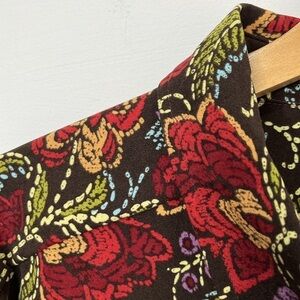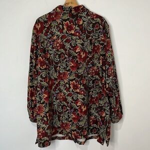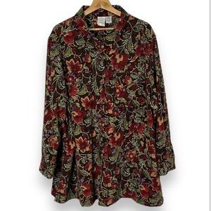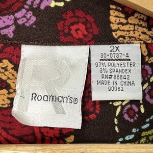 Roman's Womens 2X Top Floral Button Up Flannel Shirt Fall Colors Brown Green Red