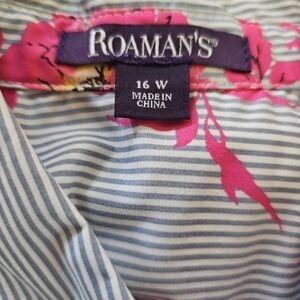 Roman's Women's Cotton Floral Shirt Dress W/ Stripes Size 16W