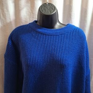 Roman's blue knitted sweater size 1X pit to pit size is 30" top of shoulder to bottom hem is 28.5 " if you have any questions please message me bundle for bigger deals Bin-115
