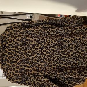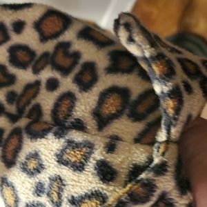 Roman's beige, black and brown leopard print pile car coat size L