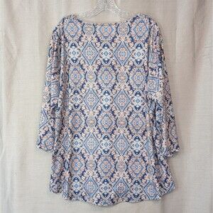 Romanstii Women's 2XL Tunic Bohemian Floral Geometric Print Long Sleeve V-Neck