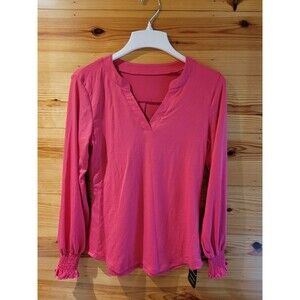 Romanstii Women's V-Neck Long Sleeve T-Shirt Style Top, Hot Pink, Small