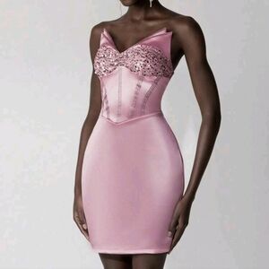 Romantic And Sexy Luxury Spring And Summer Pink Knitted Stretch BeadedStretchin